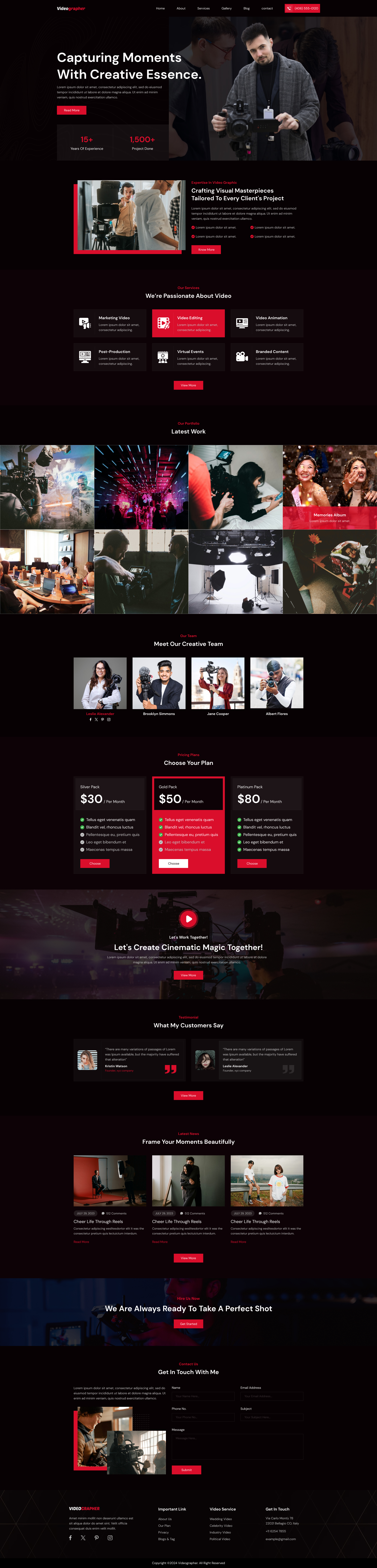 The Cinematic WordPress Theme exudes a clean, professional aesthetic, designed to highlight your video content effectively. It features a minimalistic design with a user-friendly interface, allowing you to display video portfolios, showreels, and client videos in an engaging manner. The use of high-resolution imagery and customizable video backdrops adds a sophisticated touch, while the integration of video effects and transitions enriches the visual appeal. Key features of this theme include customizable video portfolios, which allow you to organize and present your work in an attractive format. The theme supports various video accessories, such as camera equipment, tripods, and gimbals, ensuring it meets the needs of professional videographers. Additionally, it offers tools for creating video demos, promotional videos, and video marketing campaigns, making it a versatile choice for any video-centric website. The theme also incorporates video content strategy elements, ensuring your videos are optimized for both SEO and social media platforms like Instagram, Facebook, LinkedIn, and TikTok.