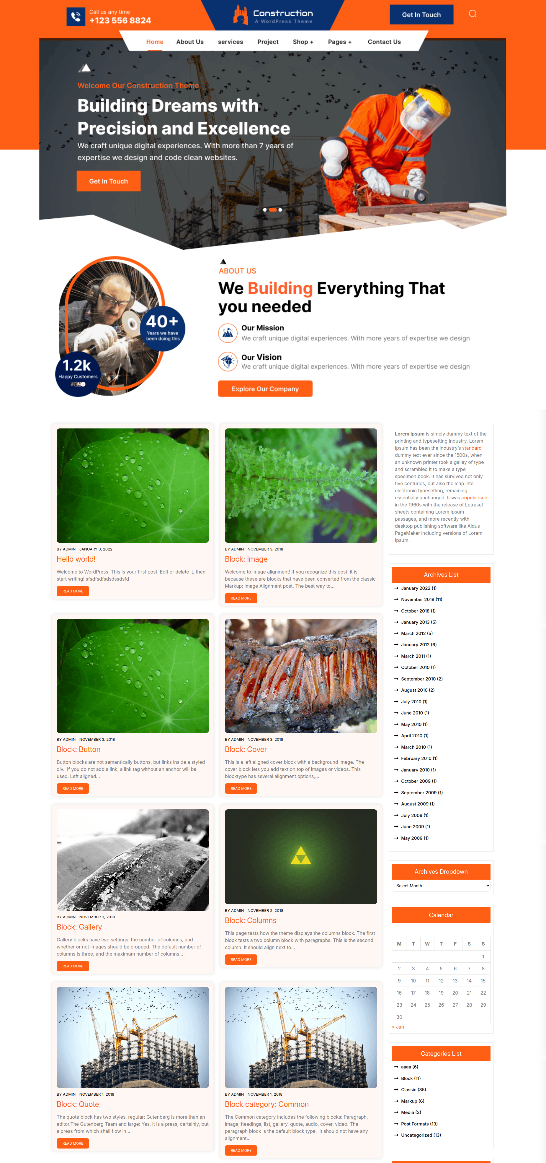 The Free Construction WordPress Theme is a versatile and robust solution tailored for construction companies and contractors. Whether you're a concrete contractor, electrical contractor, HVAC contractor, or specialise in areas like home renovation or remodelling, this theme offers the perfect platform to showcase your services. Designed with construction professionals in mind, it is ideal for companies involved in everything from masonry and carpentry to steel fabrication, road construction, and sustainable construction practices. This theme is built for ease of use and flexibility, making it suitable for both small businesses and large enterprises. It allows you to present your projects, services, and expertise effectively, helping you attract new clients and grow your business. With features like responsive design and customizable layouts, the theme ensures your website looks great on any device, providing a seamless user experience. Visual elements include clean and professional design options that allow you to highlight your work with high-quality images of your construction projects.