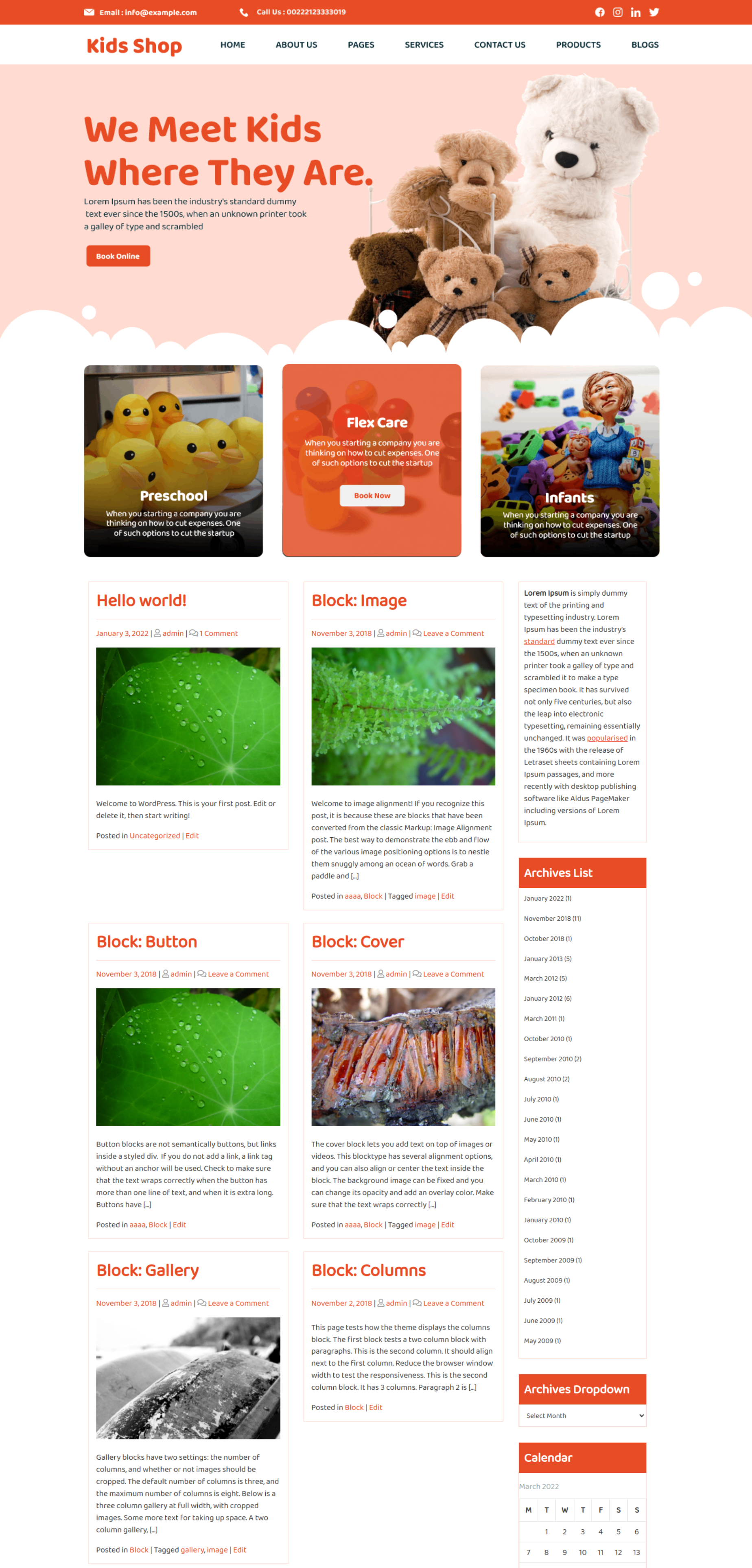 This theme is versatile and can be used for a wide range of services, including toy stores, gifts, present delivery services, Gift Vouchers, Souvenir shops, decorative items, gift wrapping, packing services, children's art & craft items or toys, and so on. The colorful and fun look of the theme is ideal for appealing toy business websites.