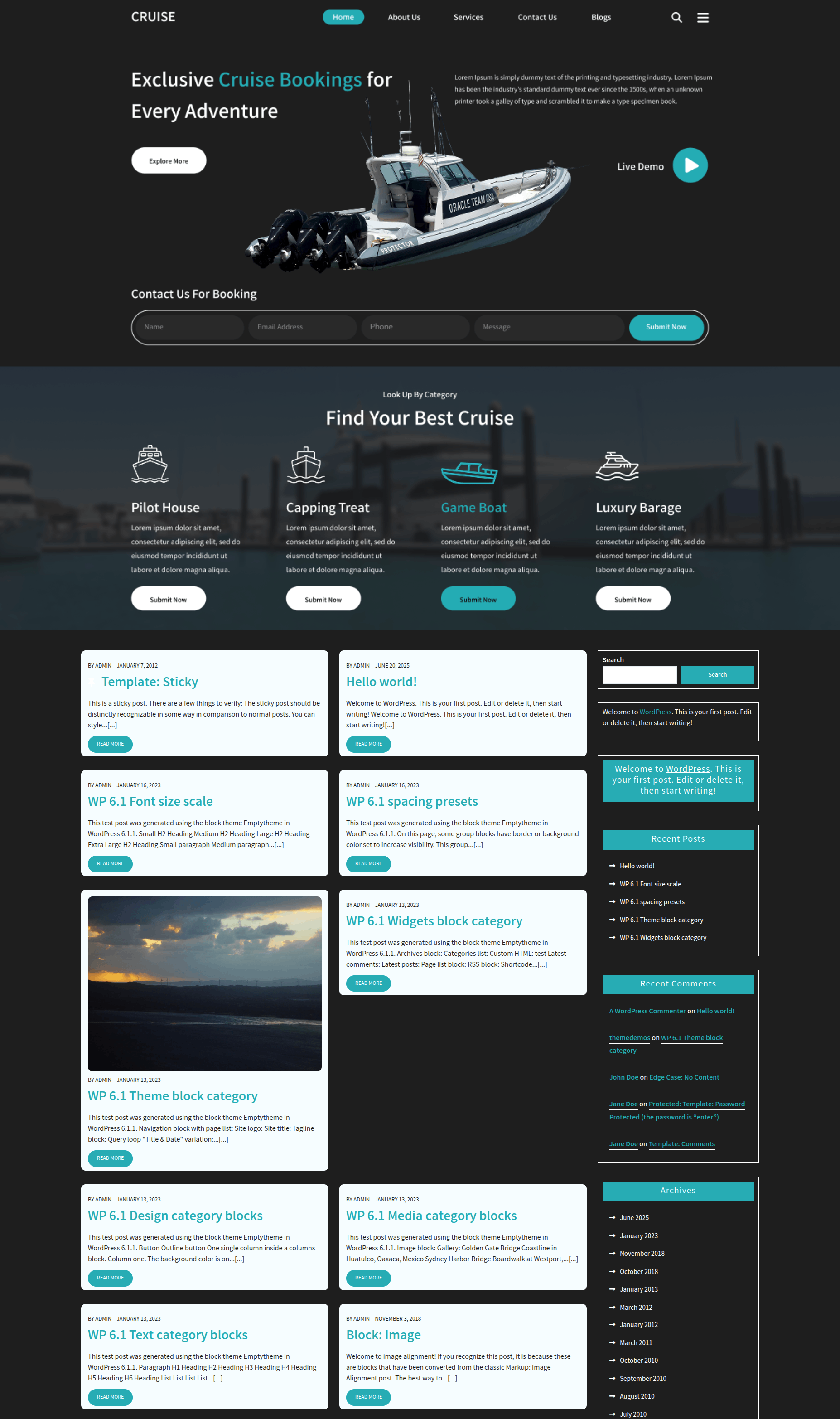 The Holiday Travel Cruise is a visually stunning and highly functional option for anyone looking to build a professional travel website. With its clean, minimal, and elegant design, this theme is perfect for travel agencies, cruise operators, travel, travel blog, travel agency, travel deals, budget travel, solo travel, adventure travel, luxury travel, family travel, travel tips, best travel destinations or even personal travel blogs. Its retina-ready and responsive layout ensures your content looks beautiful and engaging on every device, from desktop to mobile. Built with Bootstrap and featuring optimized code for faster page load time, the theme provides a secure and clean codebase, making it ideal for developers and users alike. With multiple personalization options, including a vibrant banner section, Call to Action (CTA) buttons, testimonial section, and team showcase, the theme offers an interactive and user-friendly experience. Social media integration and translation-ready features help expand your audience globally. Whether you’re starting a new travel agency site or refreshing an old one, Holiday Travel Cruise delivers a multipurpose, agency-friendly, and modern platform to bring your travel vision to life.