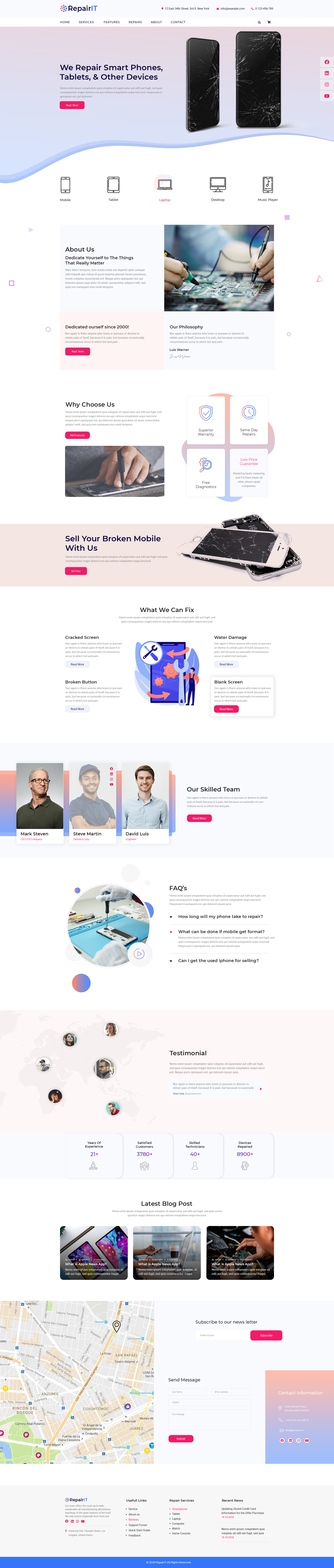 Phone Repair WordPress theme is a modern, luxurious, and sophisticated theme all set to help you present your services online. This theme is designed on a bootstrap framework that is responsible to make it user-friendly and efficient. It offers several advance options for customization and personalization. The advanced slider can create stunning sliders to display your services and portfolio using images. You can always utilize the available featured images, HD images, and video displays to make your content engaging. It is translation-ready so the pages can be translated into different languages as per users' language preferences. Optimized and clean codes make it more reliable and robust. Our Premium, as well as free themes, are SEO optimized too to help your site with search engine ranking. The responsive layout fits well on all devices so you will not miss out on any mobile users. To add more functionality, you can add CSS/JS or available shortcodes to create custom post types.