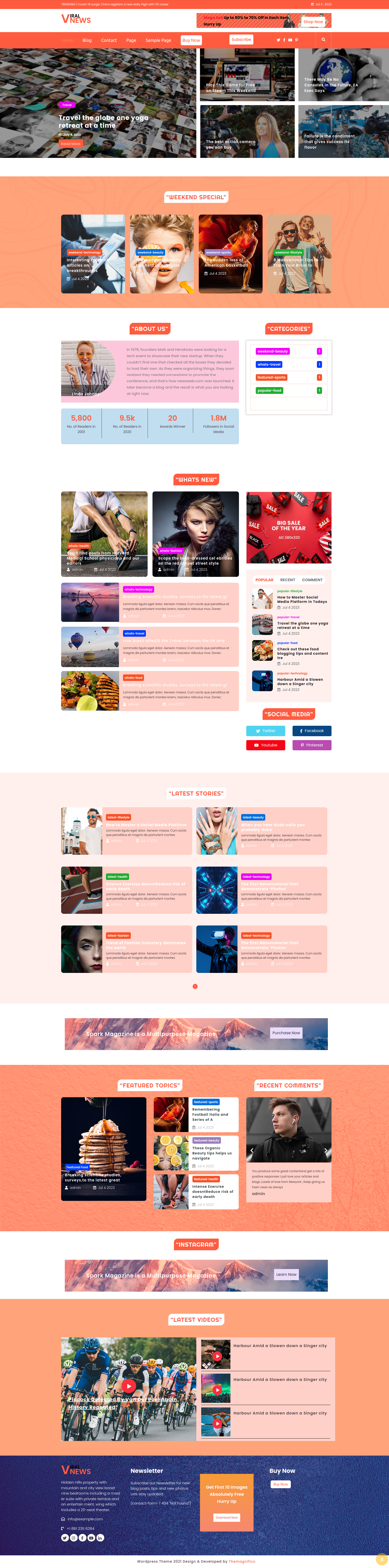 The Viral News WordPress Theme is the ultimate solution for building a powerful and engaging news website. This premium theme comes with a cutting-edge design, advanced features, and seamless functionality, taking your online news presence to new heights. The Viral News WordPress Theme offers a visually stunning and modern layout that captivates your readers from the moment they land on your site. Its clean and intuitive design ensures a smooth and enjoyable browsing experience, allowing visitors to effortlessly navigate through your news articles and engage with your content. One of the standout features of the Viral News WordPress Theme is its enhanced customization options. With a wide range of pre-designed templates, color schemes, fonts, and typography choices, you have full control over the visual aesthetics of your website. You can easily customize the layout, fonts, and colors to match your brand identity and create a unique and memorable user experience.