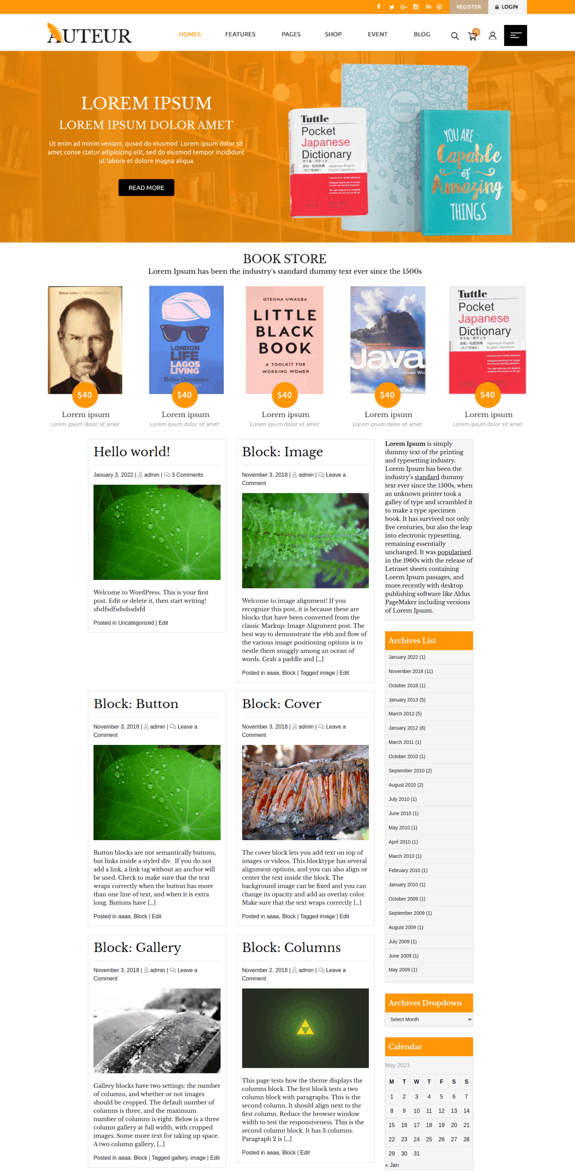 Free Bookstore Wordpress Theme